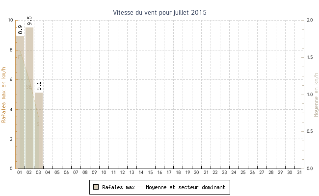 | min | max | moy | Vitesse (rafales) | Secteur | ||